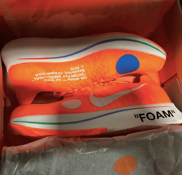 依款外形比較獨特,屬於一對 Zoom Fly + Mercurial 鞋款,鞋身根據 Mercurial 以 Flyknit 設計,鞋底採用Zoom Fly 結構,相信與早前 Virgil Abloh 出席活動著用一對Vapormax 屬於相同鞋面,暫時Off White 未有正式發佈消息。